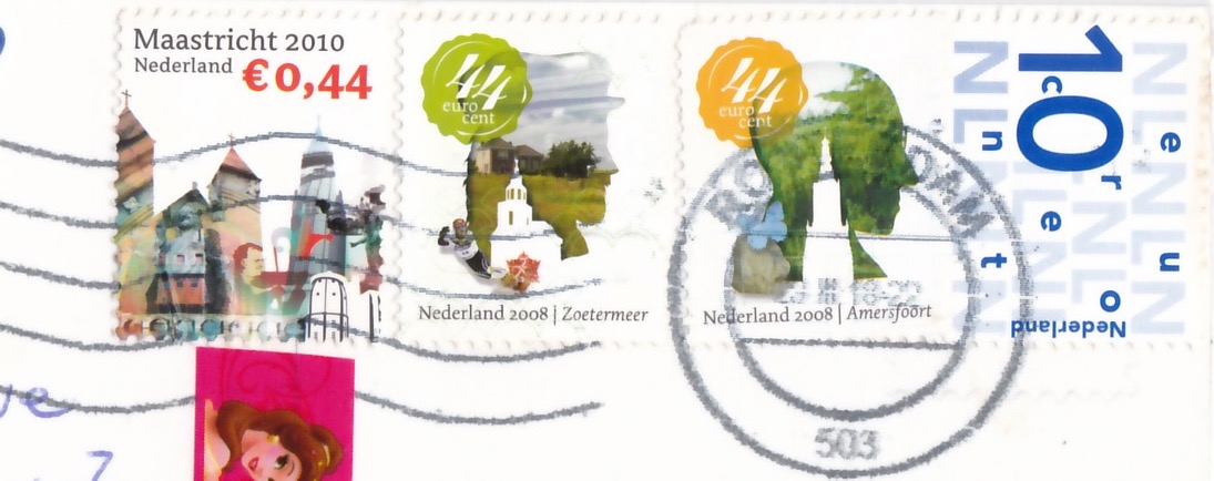 This great card came from Anjuly in the Netherlands. She wrote a friendly note on the back and talked about movies, so you know I'm happy!